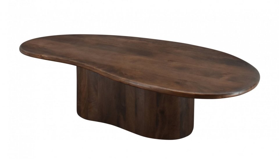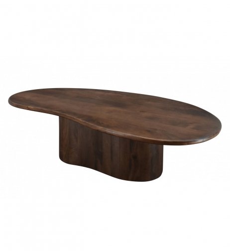 Dieser stilvolle Couchtisch besteht aus Mangoholz mit einem warmen Walnut Brown Finish, das ihm eine natürliche und elegante Ausstrahlung verleiht. Die organische Form sorgen für ein modernes und charaktervolles Design. Mit den Maßen 130 × 64 cm und einer Höhe von 36 cm bietet der Tisch ausreichend Platz für Getränke, Bücher oder Dekoration und ist ein echter Blickfang im Wohnzimmer.